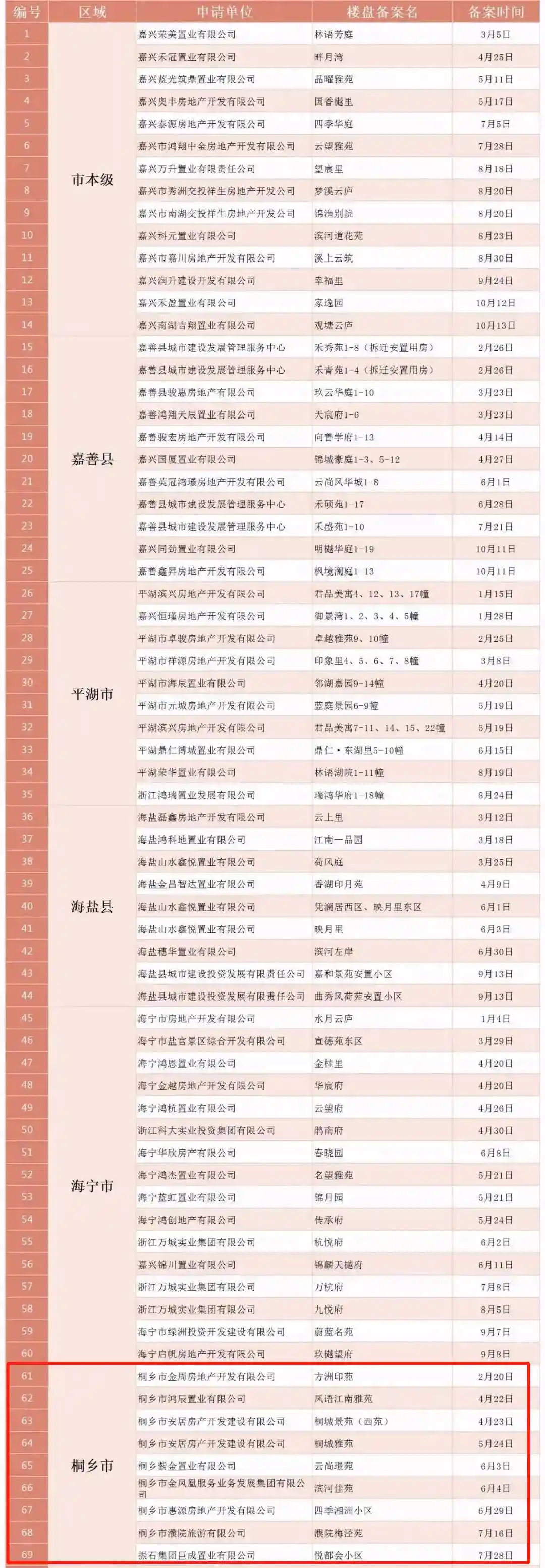 以下是嘉兴2025年新增签约备案楼盘汇总表,涉及桐乡共有9个楼盘签约备案,其中5个乡镇盘,2个安置房项目(桐城景苑、桐城雅苑)。剩余2个桐乡城区项目,分别为鸿翔凤语江南和巨成·悦都会。